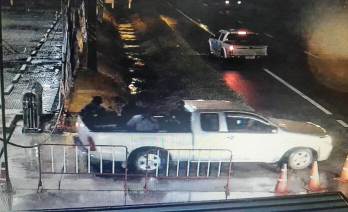 Rakaman CCTV mengesan kumpulan perompak terbabit melarikan diri menaiki sebuah trak pikap berwarna putih.