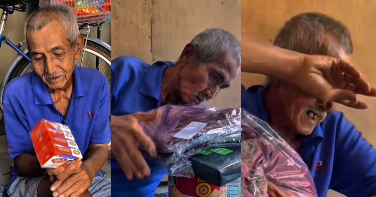 Kisah menyentuh hati itu dikongsikan menerusi akaun TikTok Aneisha Bara menampilkan lelaki tua tersebut mengesat air mata ketika menerima beberapa barang bantuan berkenaan.