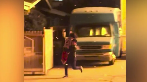 Tanpa berlengah, Recinos memakai jaket kulitnya sebagai perlindungan dan berlari ke arah kanak-kanak itu.