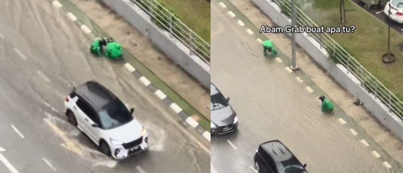 [VIDEO] Mulianya hati rider, sanggup korek longkang ketika banjir kilat landa KL
