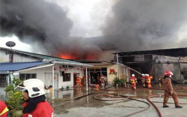 "Kebakaran itu membabitkan kilang berkeluasan 30.5 x 30.5 meter persegi. Kerja-kerja pemadaman api sedang dijalankan," katanya.