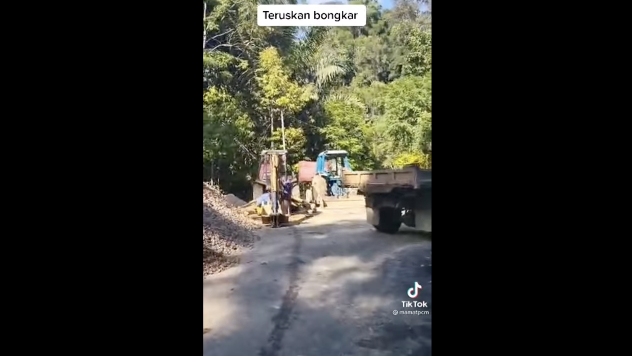Beliau turut mempersoalkan kewujudan jentera-jentera berat dan batu kasaran di kawasan itu, dipercayai untuk membina jalan di kawasan hutan simpan itu.