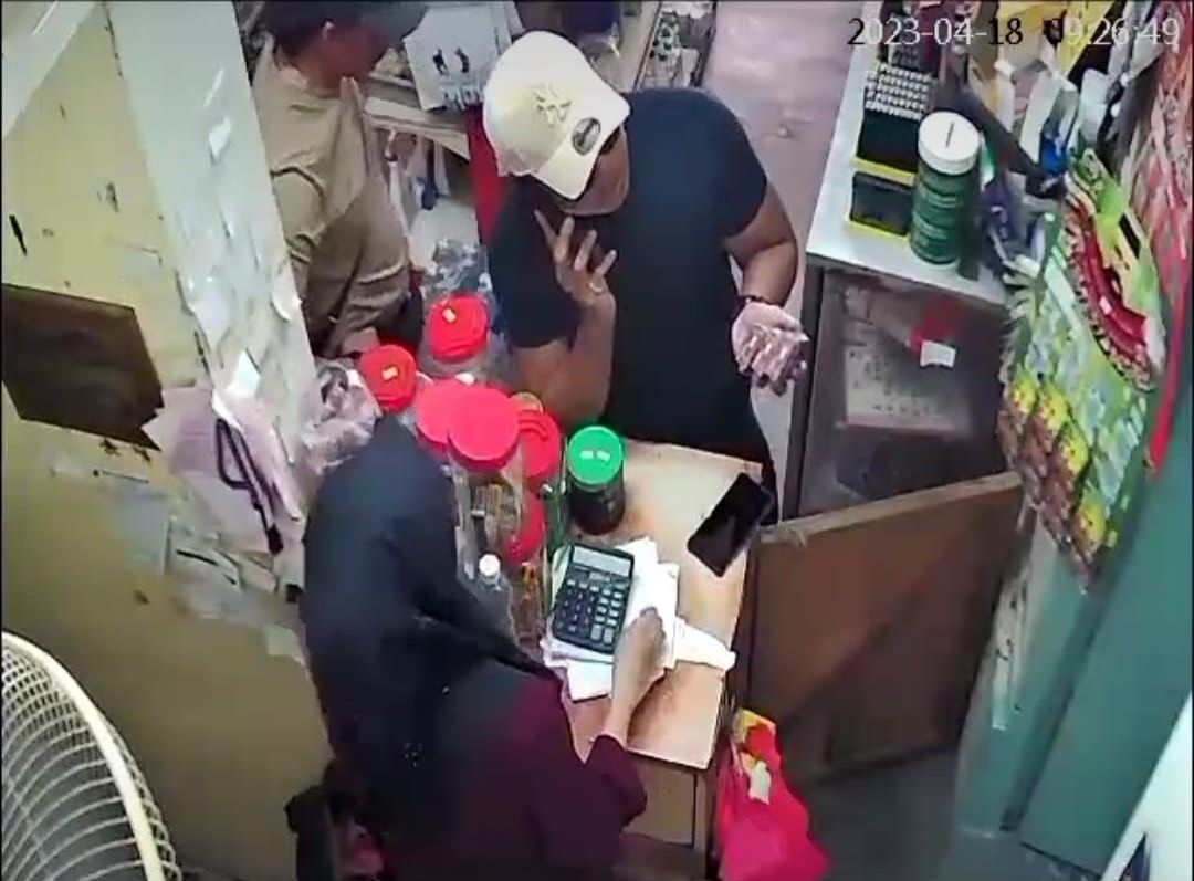 Menerusi klip video berdurasi lima minit yang tular pada Ahad itu, salah seorang daripadanya memakai t-shirt gelap dan topi berwarna putih dilihat sedang bercakap melalui telefon bimbit sambil diperhatikan oleh individu dipercayai pemilik kedai tersebut.