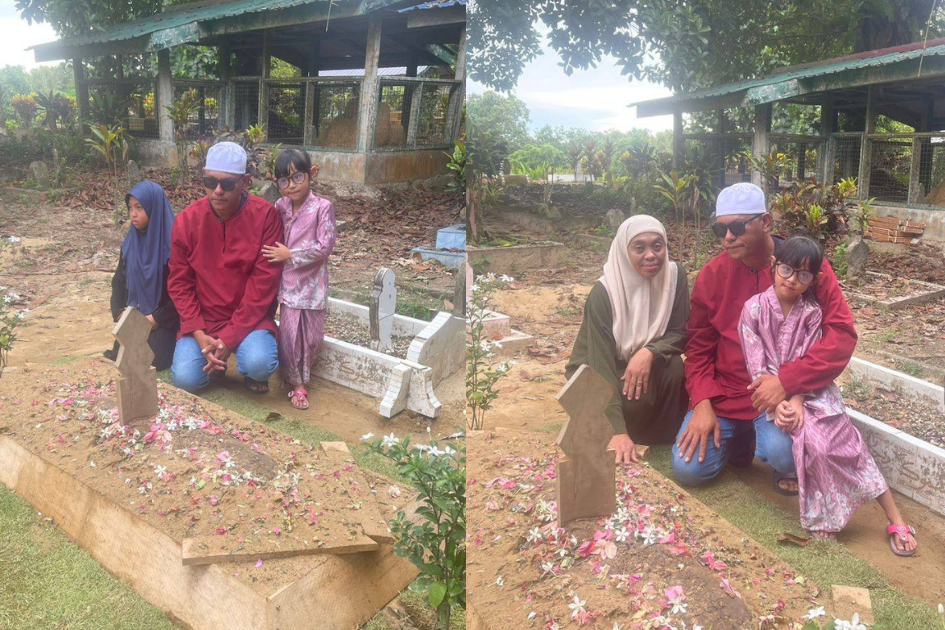 Nasir bersama keluarganya menziarahi pusara arwah Zara di Tanah Perkuburan Tanjung Ubi, Mesapol, Sipitang pada Ahad.