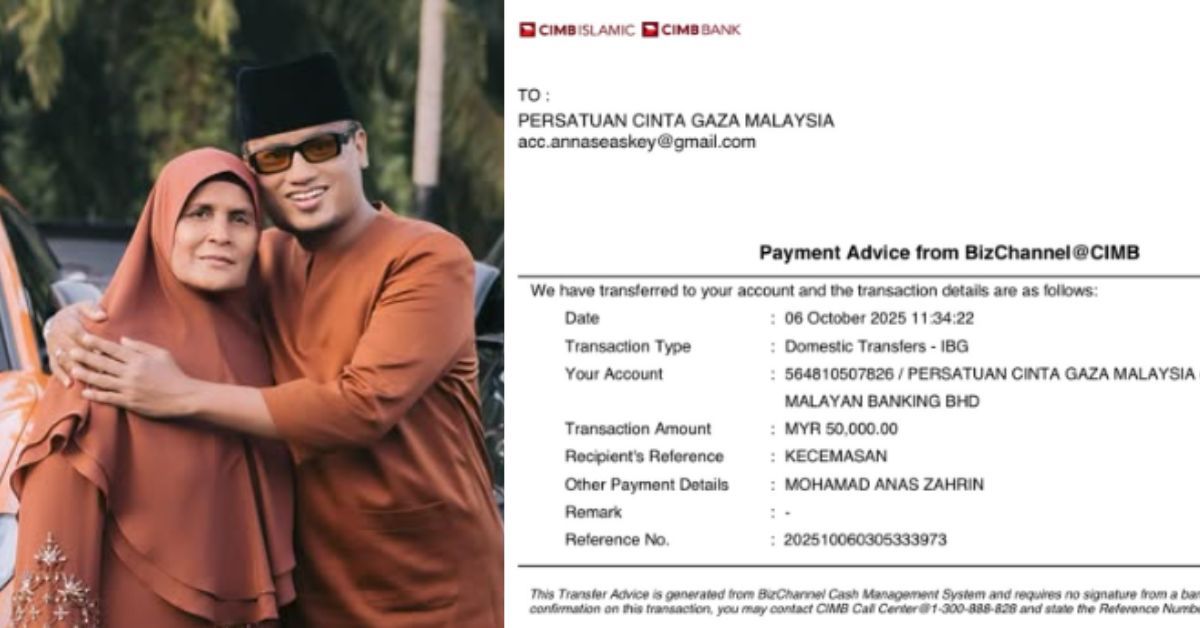 Anas yang merupakan usahawan kosmetik kelahiran Kota Tinggi, Johor berkongsikan derma sebanyak RM50,000 kepada Persatuan Cinta Gaza Malaysia melalui satu transaksi pada Isnin (6 Oktober).
