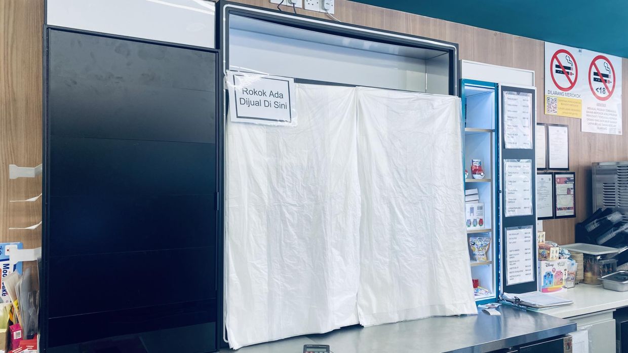Dalam perkongsian itu, Muhamad Harris menceritakan bagaimana rak rokok dan vape di kedai tersebut ditutup dengan kertas putih, menyebabkan dia menyangka jualan produk itu sudah dihentikan.