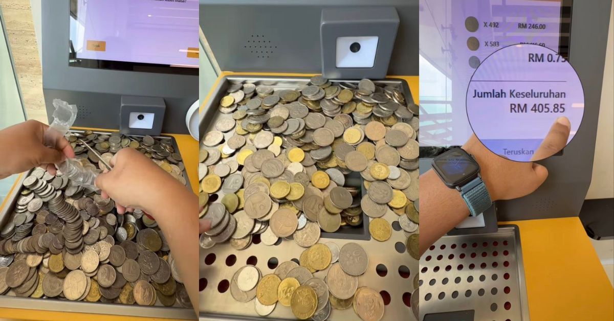 SEORANG lelaki menarik perhatian ramai apabila tabungan duit syilingnya mencecah RM400 apabila ditukar di mesin deposit sebuah bank di Bangsar South, Kuala Lumpur.