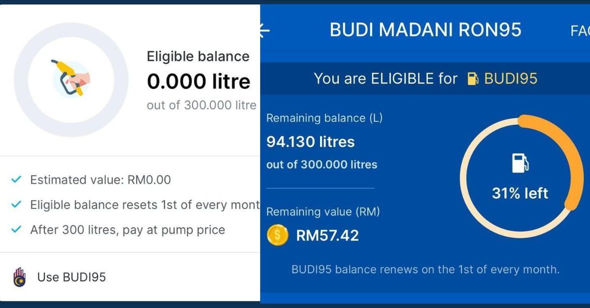 Dia berpendapat, kemungkinan BUDI95 miliknya akan berbaki lagi 20 hingga 30 peratus menjelang hujung bulan.