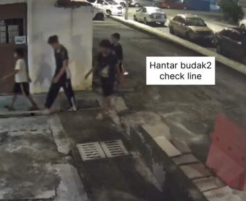 Rakaman CCTV menunjukkan sekumpulan empat orang budak mengambil tempat masing-masing dengan ada yang duduk di kaki lima, berdiri di sebalik tembok dan pura-pura merayau.