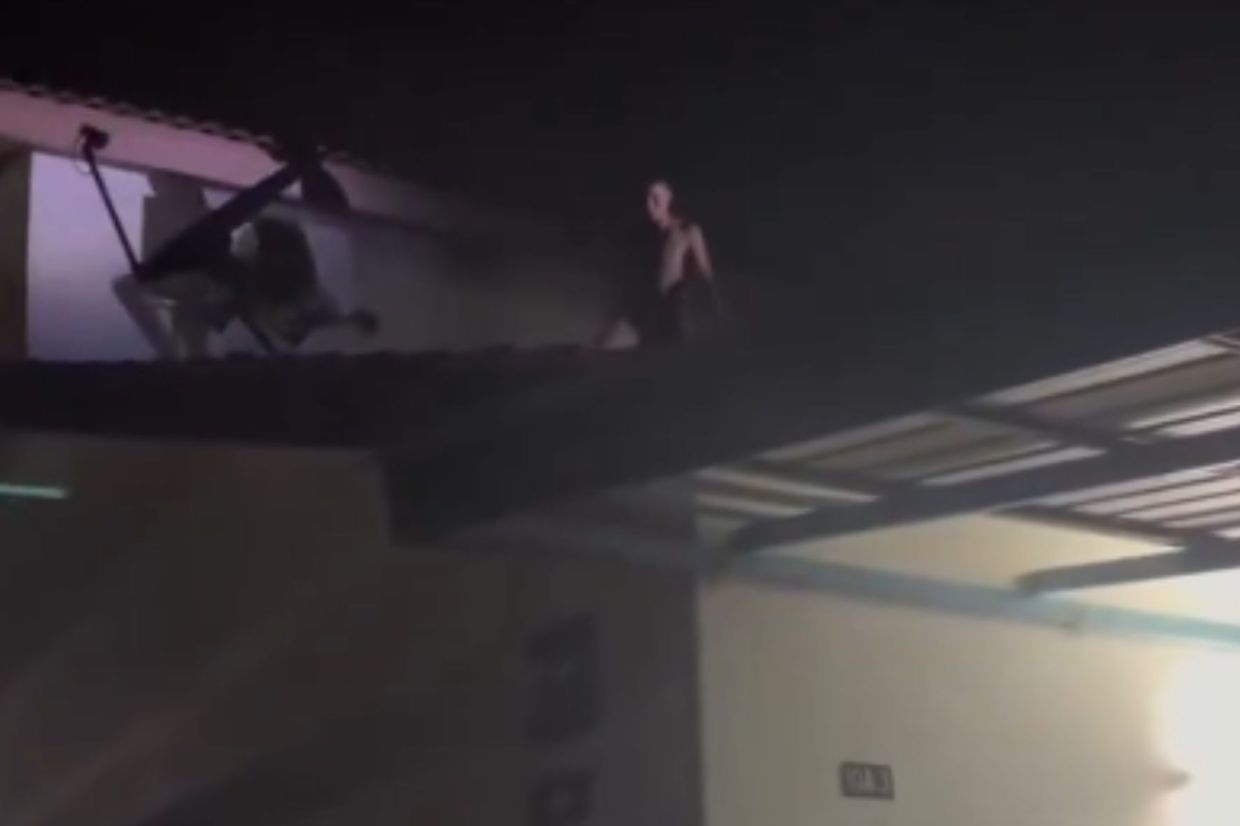 Rakaman turut memperdengarkan jeritan penduduk yang mengarahkan suspek turun, namun lelaki itu dilihat cuba memberi pelbagai alasan sebelum seorang lagi rakannya sempat melarikan diri.
