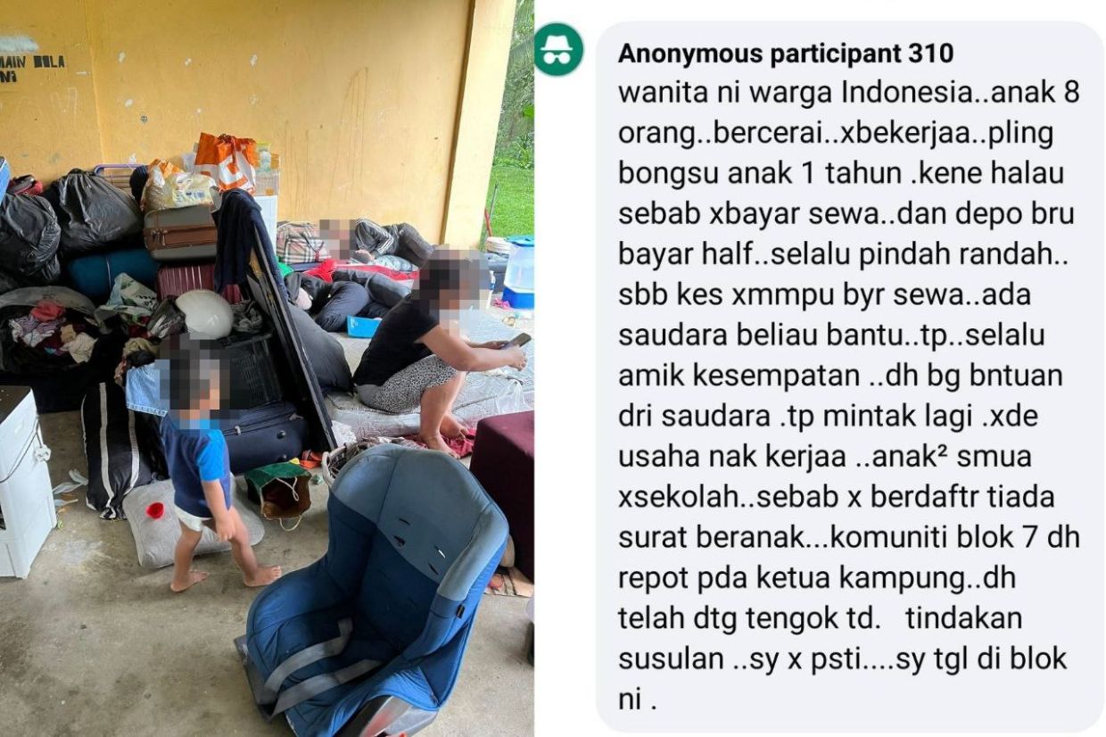 “Anak-anak semua tidak bersekolah sebab tiada surat beranak. Ada saudara yang bantu, tapi katanya sering ambil kesempatan. Ketua kampung pun sudah datang tengok keadaan tadi.