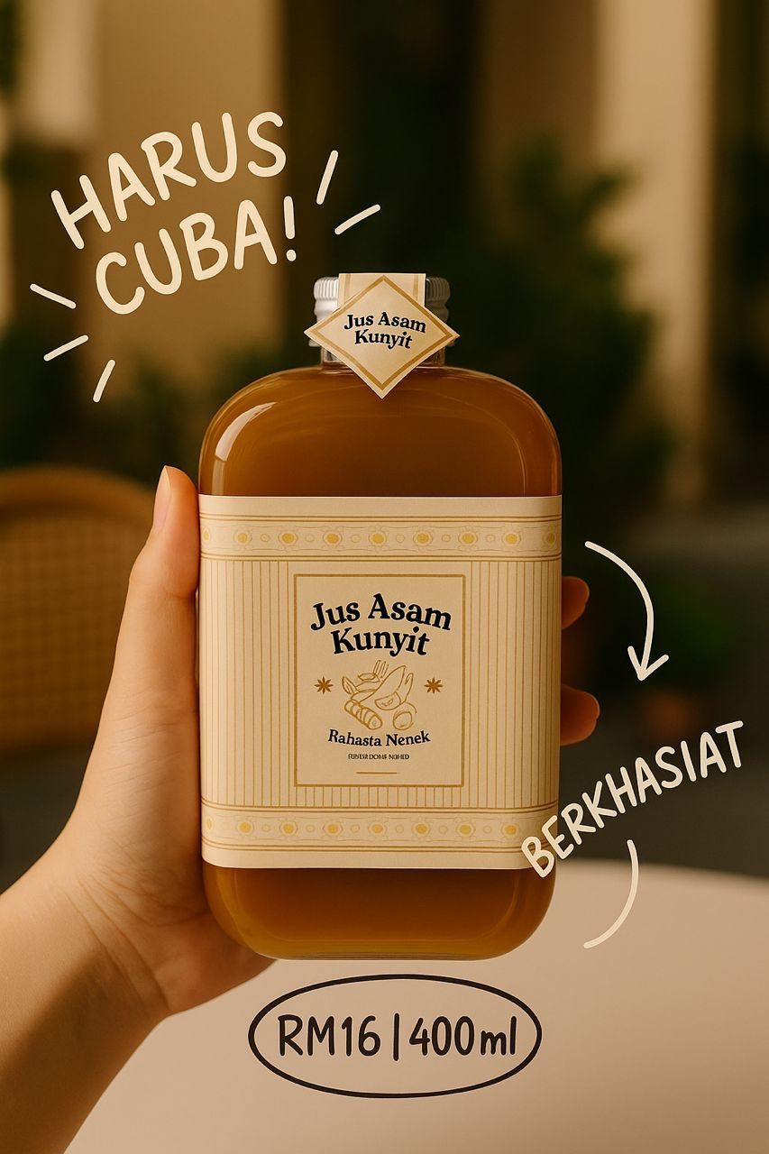 Jus asam kunyit dijual pada harga serendah RM16 sebotol.