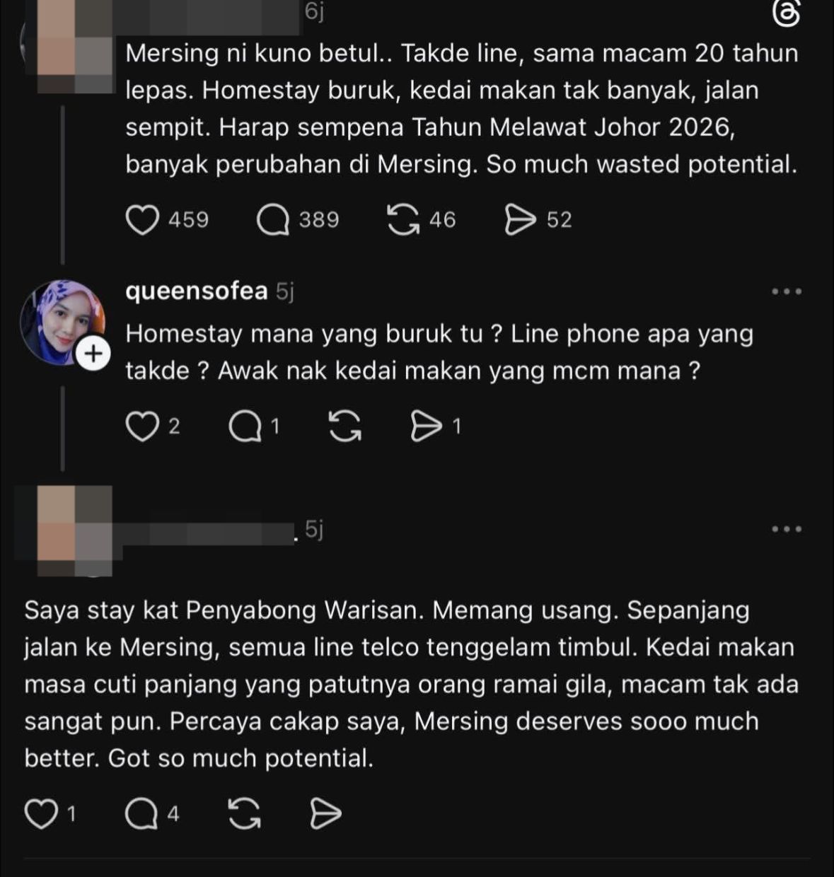 Tindakan pengguna Threads melabel Mersing sebagai kawasan kuno tidak boleh diterima.