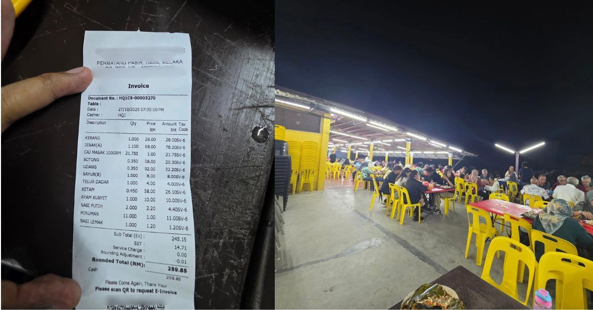 Menurut perkongsian akaun Diari Melaka di Facebook, pelanggan itu menceritakan pengalaman tidak menyenangkan apabila jumlah bil berubah selepas dia meminta resit rasmi daripada kedai berkenaan.