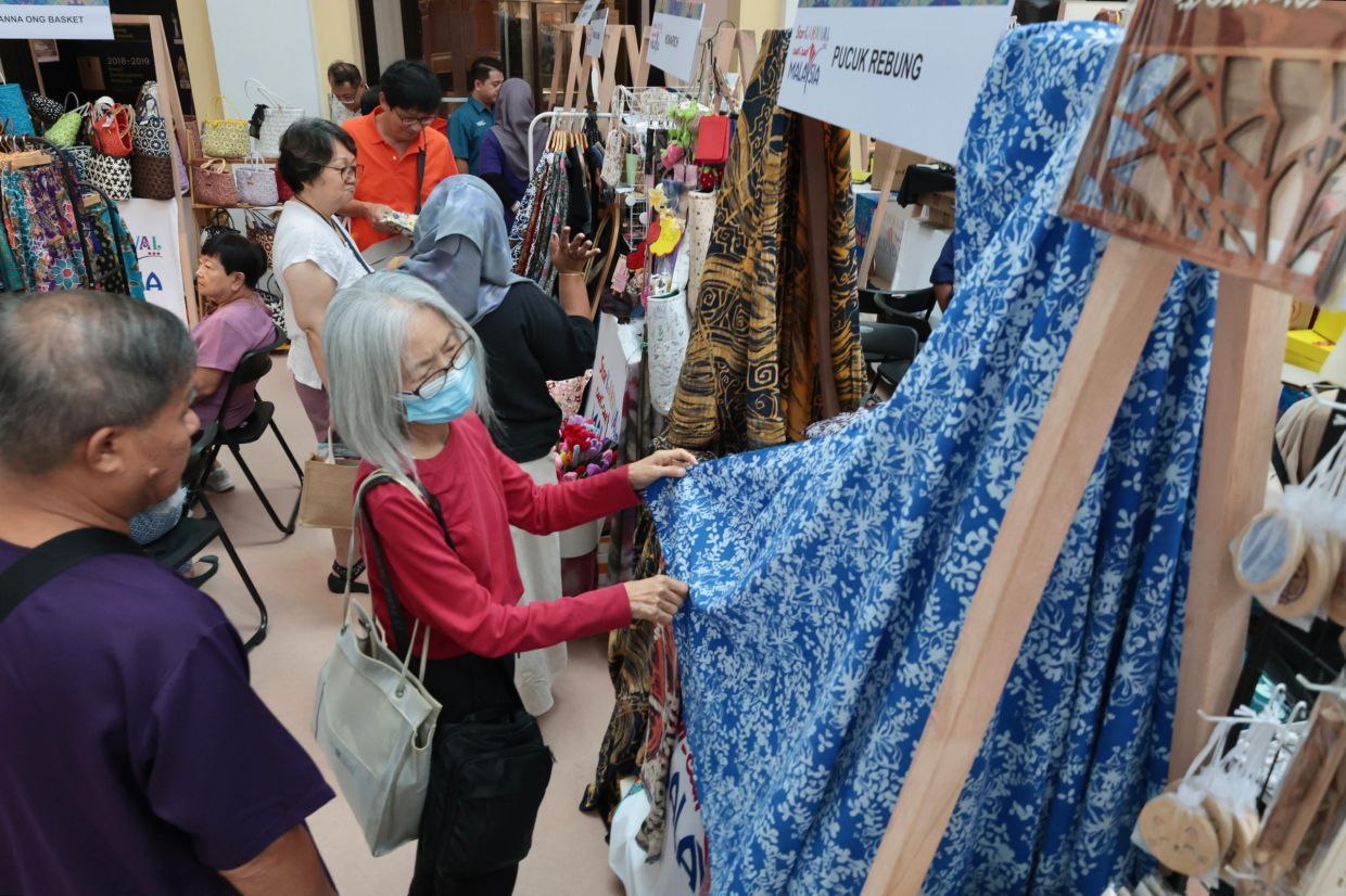 Pengunjung meninjau hasil kraf tradisional seperti batik di SKCCM yang berlangsung di Pulau Pinang.