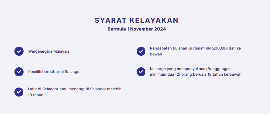 “Pemohon perlu memastikan mereka memenuhi syarat kelayakan, antaranya pendapatan isi rumah di bawah RM5,000 dan mempunyai sekurang-kurangnya dua tanggungan berumur bawah 18 tahun,” menurut kenyataan itu lagi.