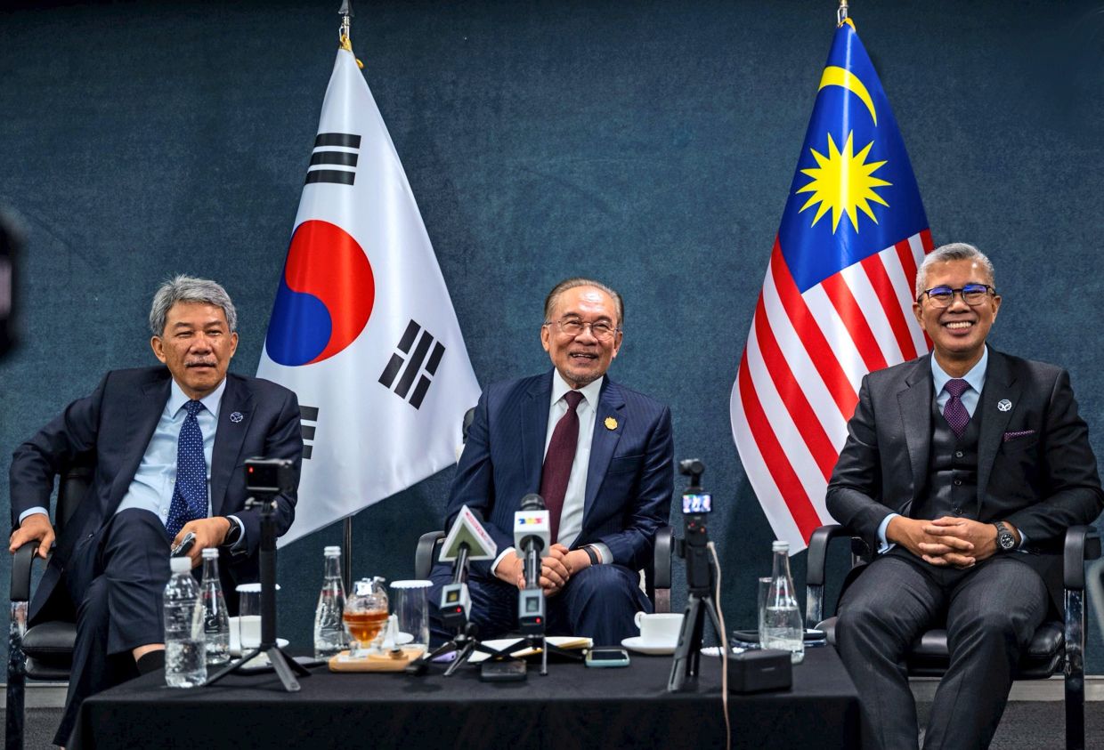 Anwar (tengah) baru sahaja pulang dari mengetuai delegasi Malaysia AELM di Korea Selatan.