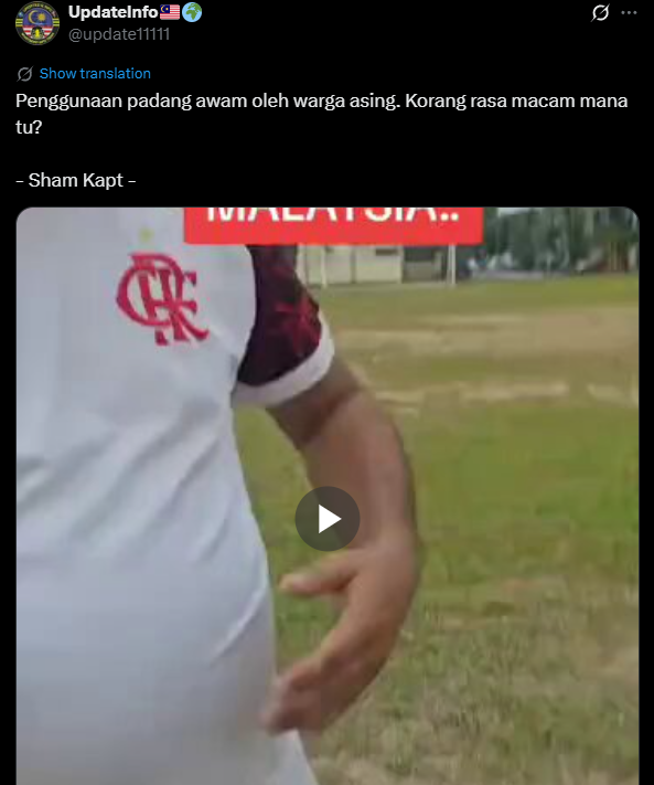 Dalam rakaman berdurasi kurang daripada seminit itu, lelaki tempatan berkenaan menegaskan bahawa padang tersebut terletak di kawasan perumahan dan seharusnya diutamakan untuk kegunaan penduduk setempat.