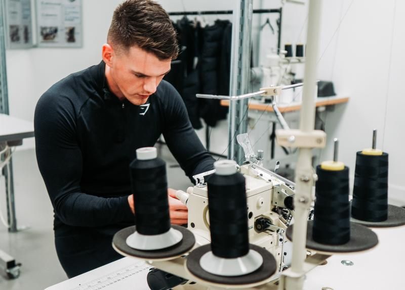 Dengan bantuan mesin jahit dan alat cetakan skrin, semua baju pertama Gymshark dijahit sendiri oleh Ben.