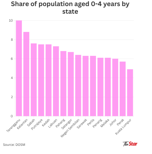 Peratusan penduduk berumur 0–4 tahun mengikut negeri.