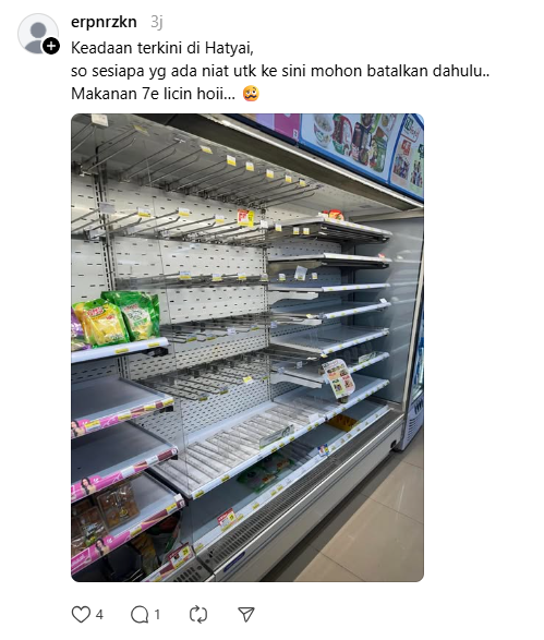 "Siapa yang dekat Hat Yai sekarang dan terkandas di hotel boleh minta komen dekat sini (Threads).