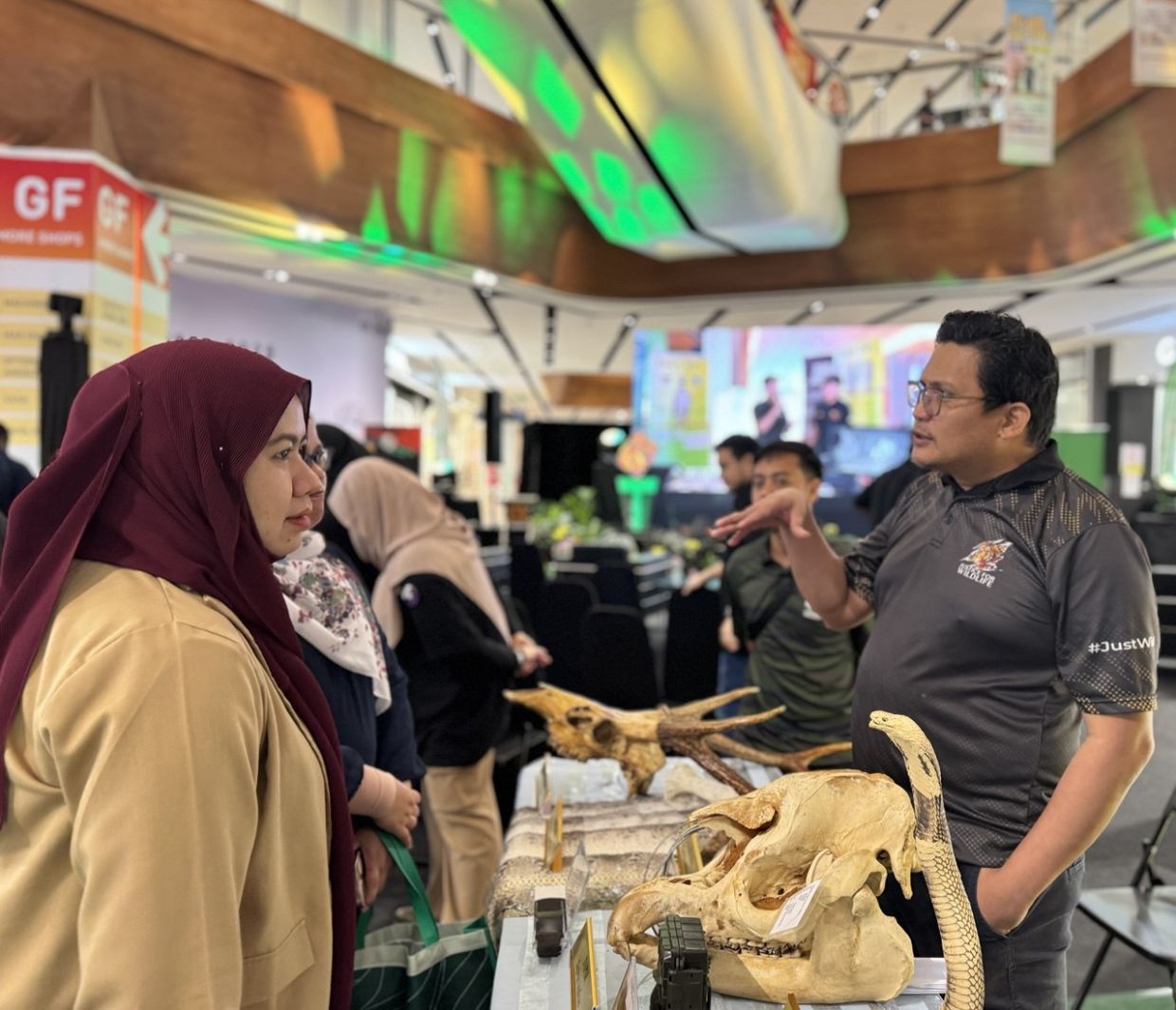 Zulkefli (kanan) di booth PERHILITAN pada Jelajah Sawit Hijau MPOGCF.