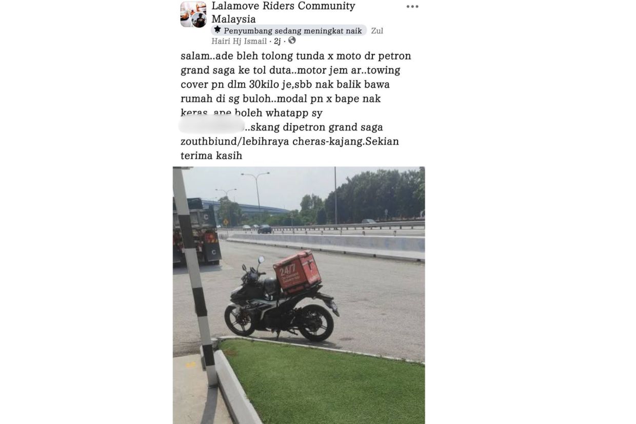 "Sudah sampai rumah. Ada seorang rider datang menolong menunda motosikal saya dari Kajang ke Sungai Buloh tanpa minta satu sen pun.