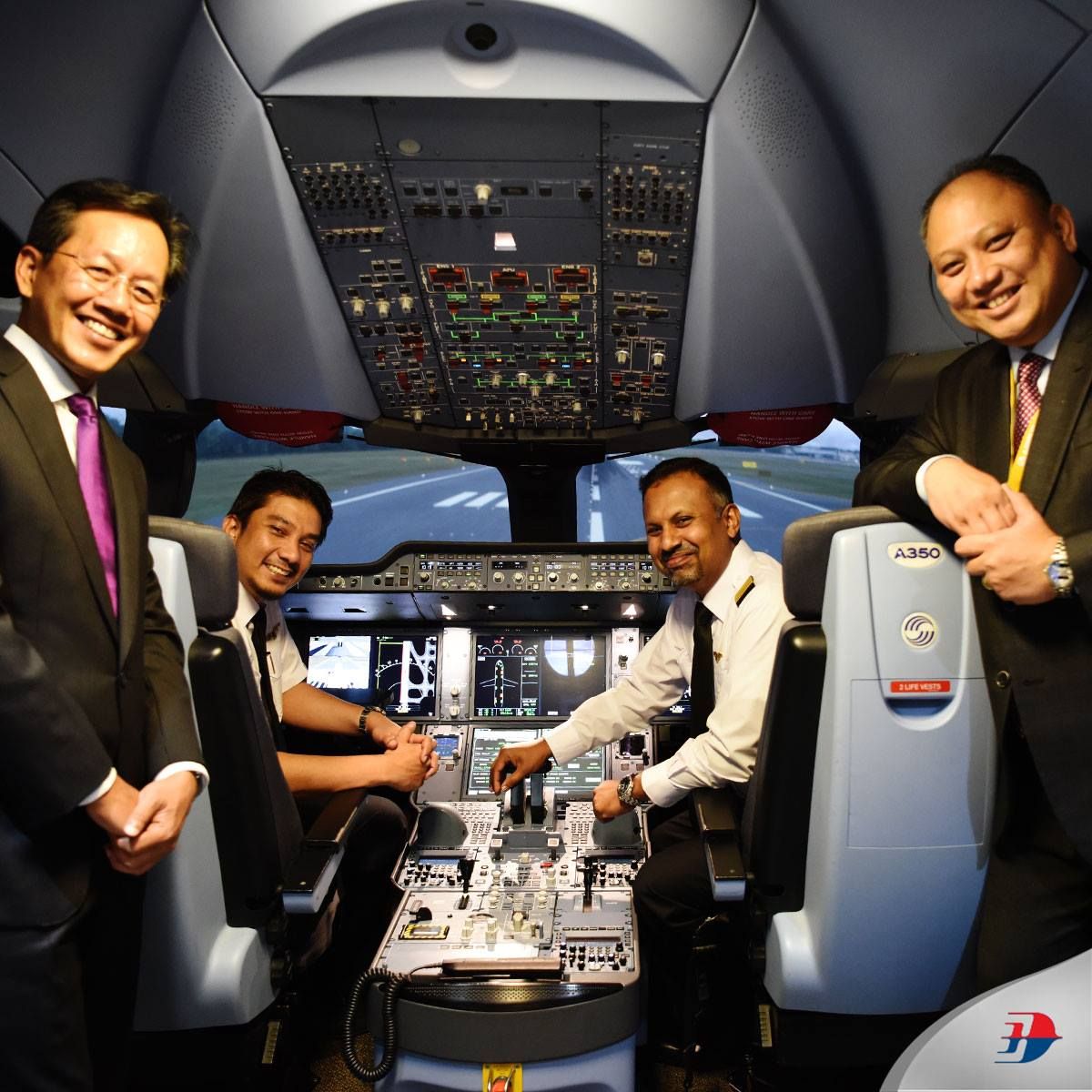 Izham (depan, kiri) memulakan kerjayanya sebagai juruterbang sebelum dinaikkan pangkat. — MAS