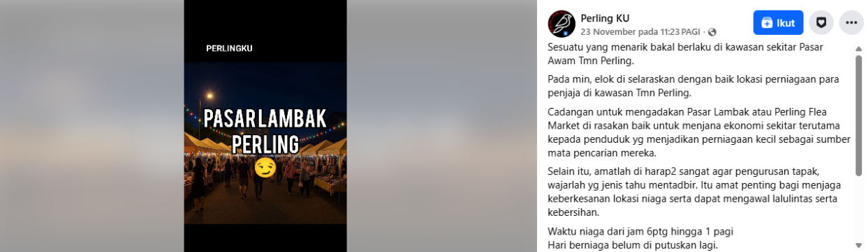 Tangkap layar cadangan Pasar Lambak Perling di Facebook Perling Ku.