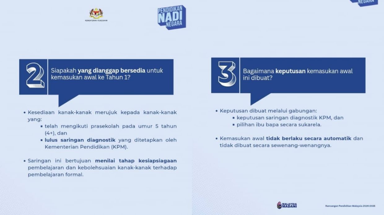 Tambah beliau, ibu bapa yang tidak bersetuju masih boleh mengikut kaedah sedia ada dengan membenarkan anak memasuki Tahun Satu pada usia tujuh tahun, selaras dengan penegasan bahawa dasar itu tidak diwajibkan dan perlu disokong oleh penilaian diagnostik. — The Star/ANNABELLE LAWRENCE