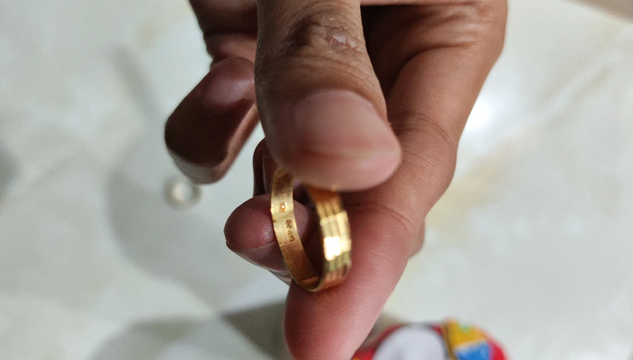 Cincin emas dimiliki merupakan jenis 916 karat.