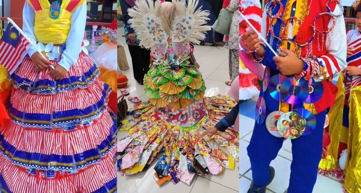 Lebih menarik apabila melihat kegigihan dan kreativiti ibu bapa murid yang terlibat mereka pakaian mereka menggunakan bahan kitar semula seperti plastik minuman, makanan, cakera padat dan sebagainya.