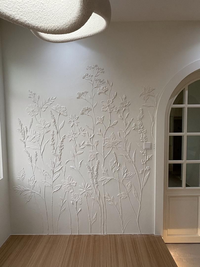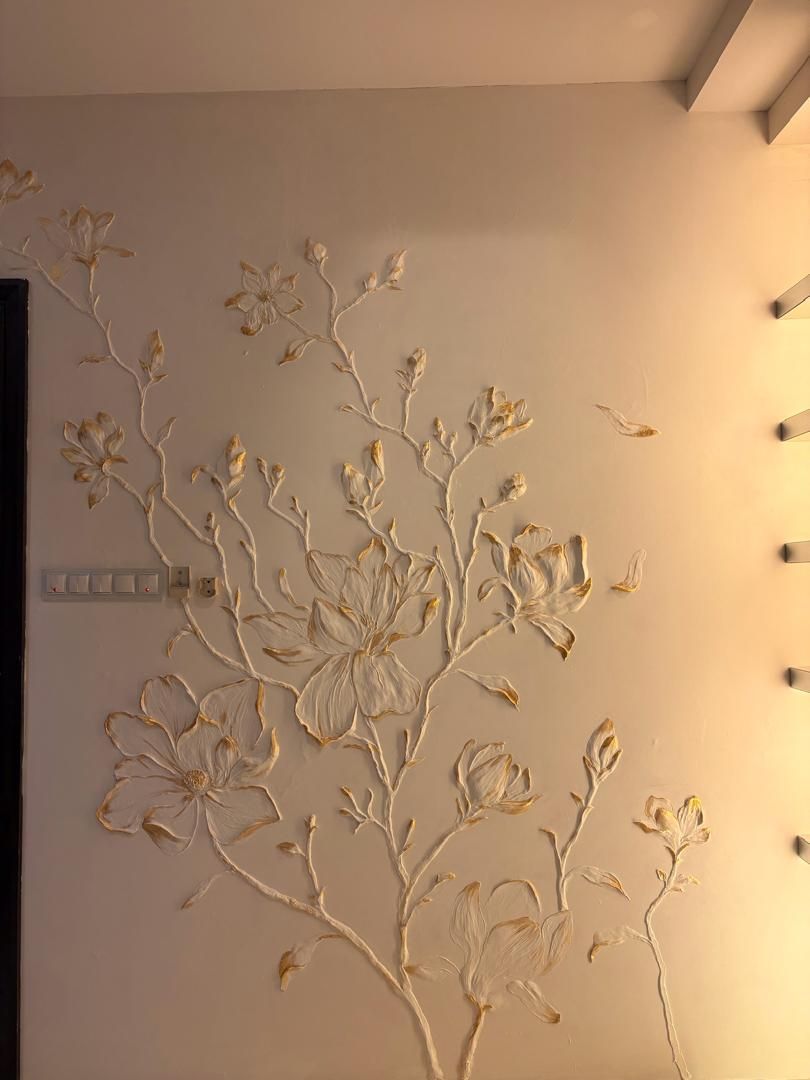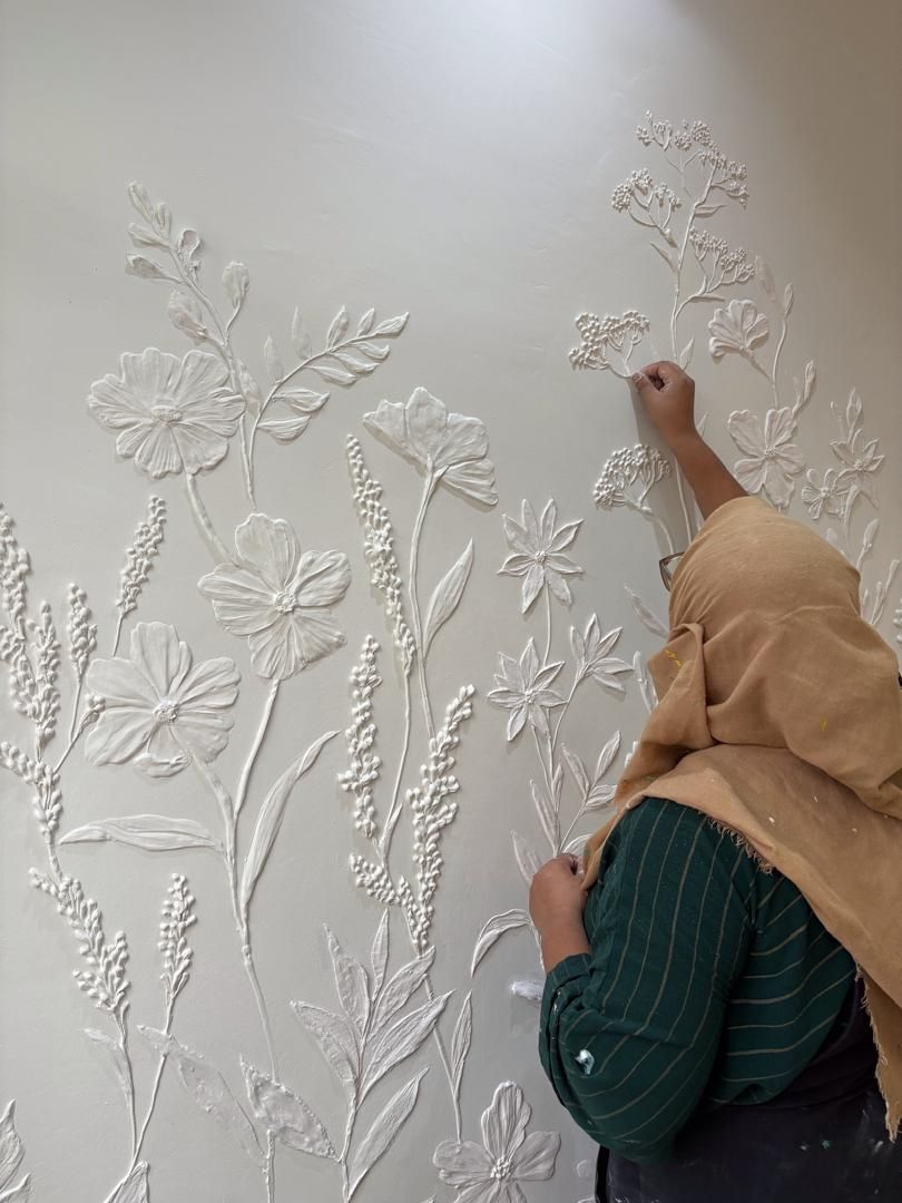 Berbeza dengan mural besar di ruang komersial, Asyikin memfokuskan pada reka bentuk yang lembut dan sesuai untuk kediaman, seperti bunga-bunga halus dan relief art yang memberikan kesan tiga dimensi (3D) yang penuh elegan.