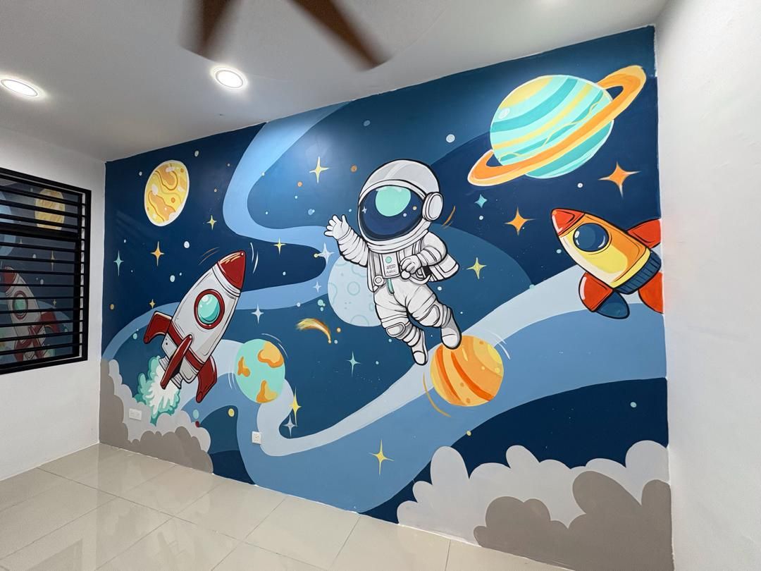 Mural kanak-kanak bertema angkasawan ciptaan Asyikin menarik minat si kecil!