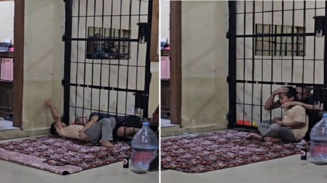 Menerusi video dimuat naik di laman Instagram @wgshub melihatkan seorang kanak-kanak lelaki dibenarkan tidur di luar sel tahanan di samping ayahnya sedang menjalani hukuman penjara.