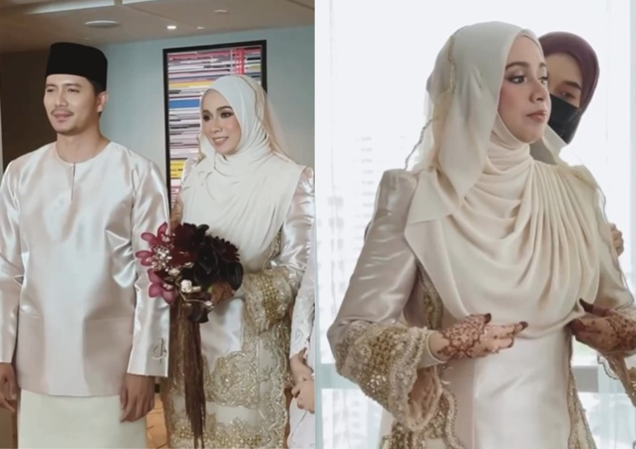 Majlis berkonsepkan tradisional klasik Melayu itu menyaksikan pasangan mempelai tampil anggun dan segak dalam persalinan rekaan pereka fesyen terkenal, Fiziwoo yang menampilkan busana serba putih gading.