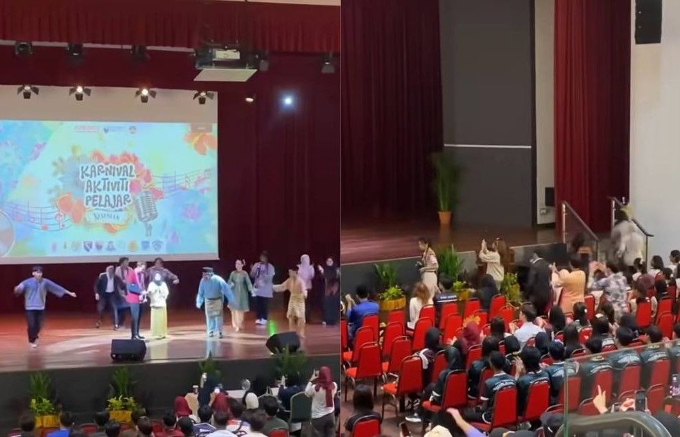 Namun, tanpa sebarang arahan, kelihatan beberapa penonton termasuk peserta lain tampil ke pentas menari dan memberikan sokongan kepada pelajar berkenaan.