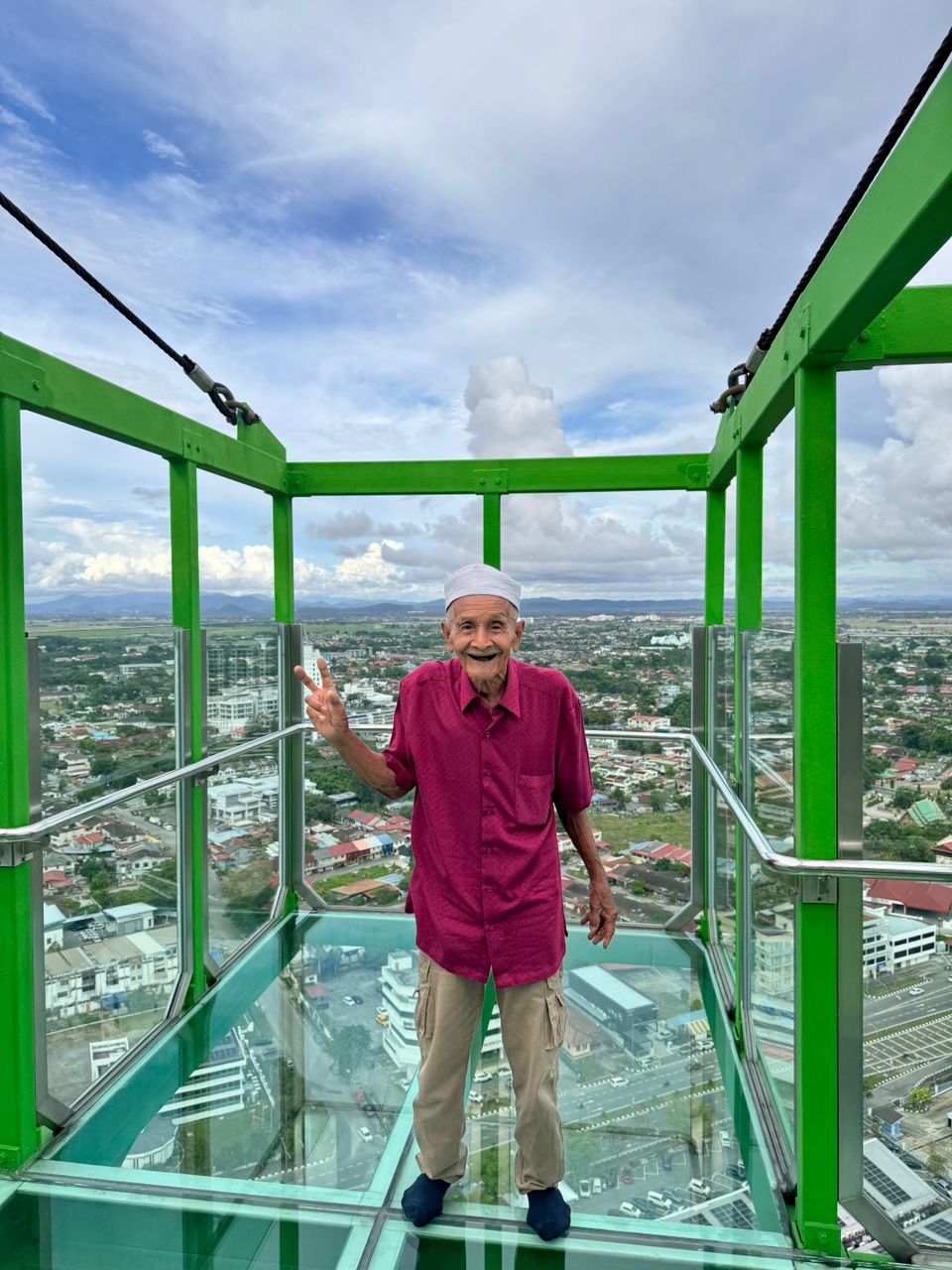“Semasa penerbangan kami transit di Alor Setar, Kedah saya bawa atuk ke rumah kelahiran Tun M, teruja dia waktu itu,” katanya yang turut memberitahu datuk beliau masih aktif berkebun, menanam sayur dan membela ayam di rumah.