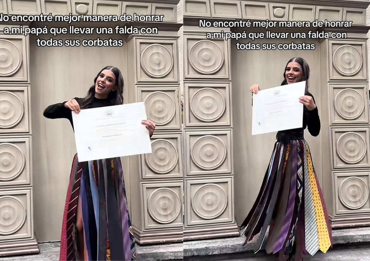 Veronica hadir ke majlis graduasinya dengan memakai skirt yang diperbuat daripada semua koleksi tali leher bapa beliau sebagai tanda penghormatan atas segala jasa pengorbanan dicurahkan.