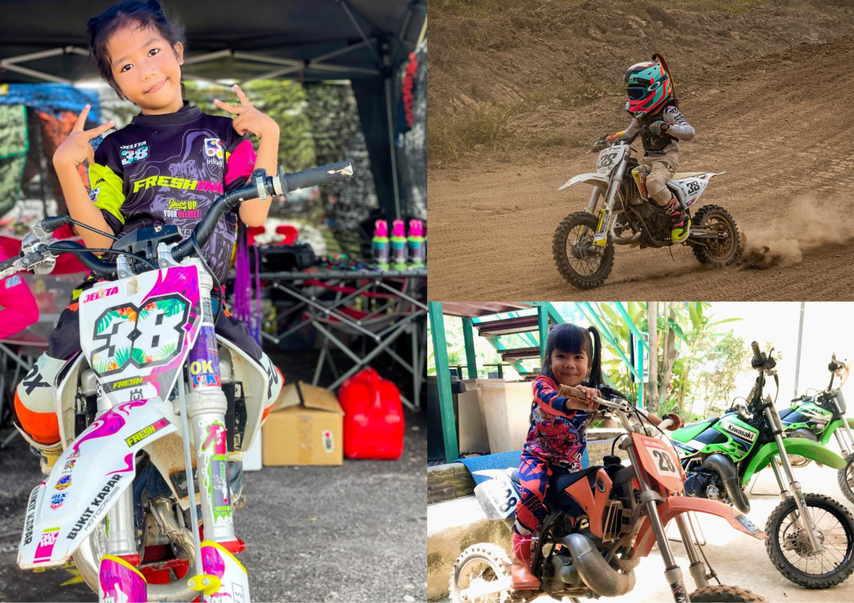 "Masa umur dia nak masuk lima tahun, bapanya carikan aktiviti baharu, terjumpa sukan motocross. Jadi kami cuba bagi dia belajar, tak sangka mampu bawa motor kecil dan imbangkan sendiri.