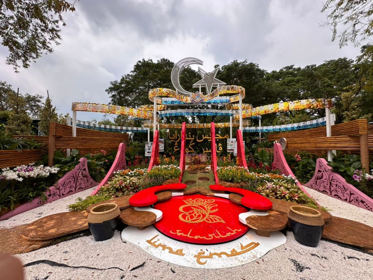 "Gabungan warna bunga dengan tema budaya buat gambar nampak 'alive'. Terima kasih kepada pasukan landskap yang hasilkan ruang secantik ini." — Majoriti