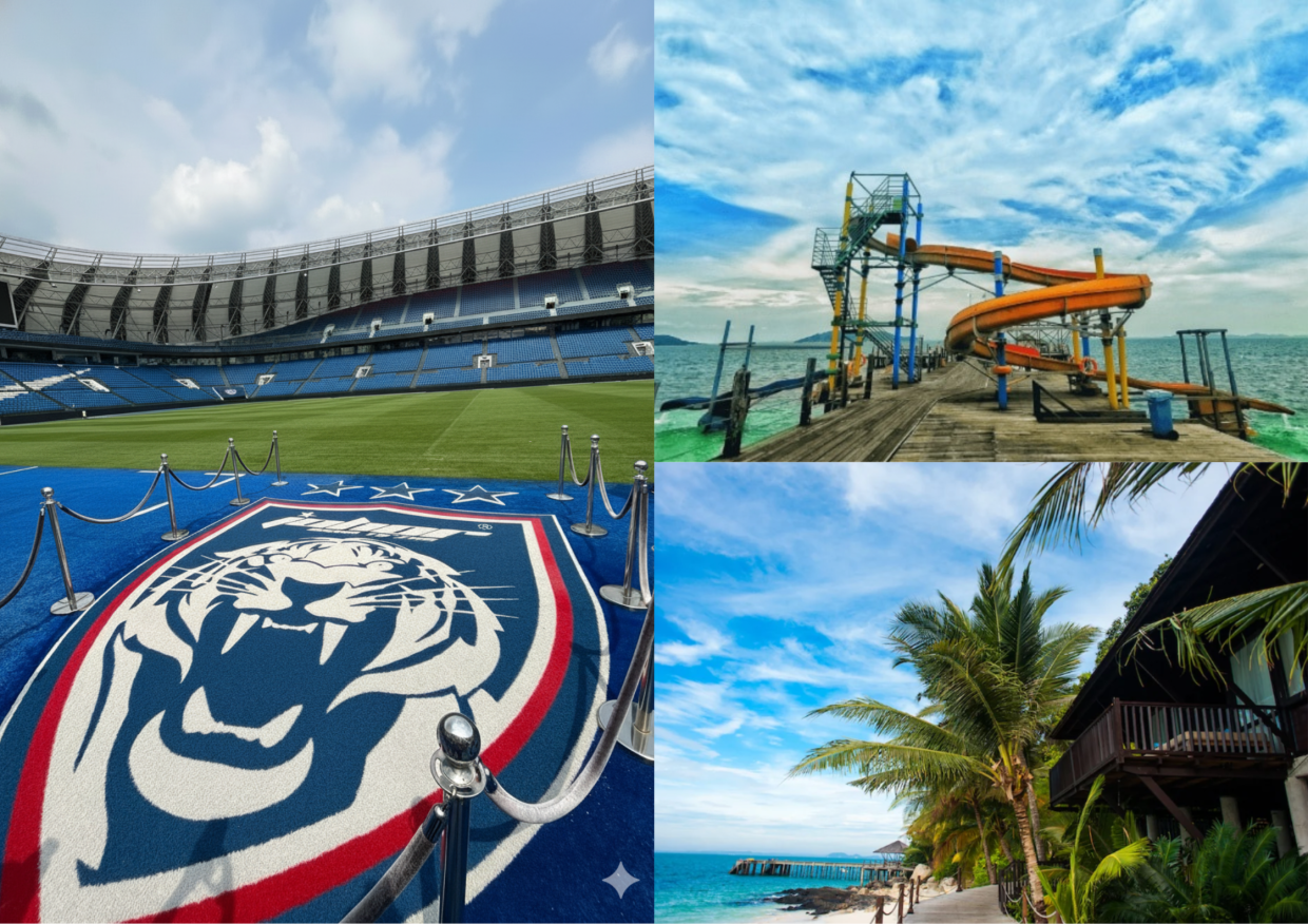 Pelancong boleh memilih antara pengalaman percutian pulau yang tenang, atau menjelajah ke kawasan bandar bagi melihat sendiri kehebatan Stadium Sultan Ibrahim dan pembangunan sekitarnya yang pesat.