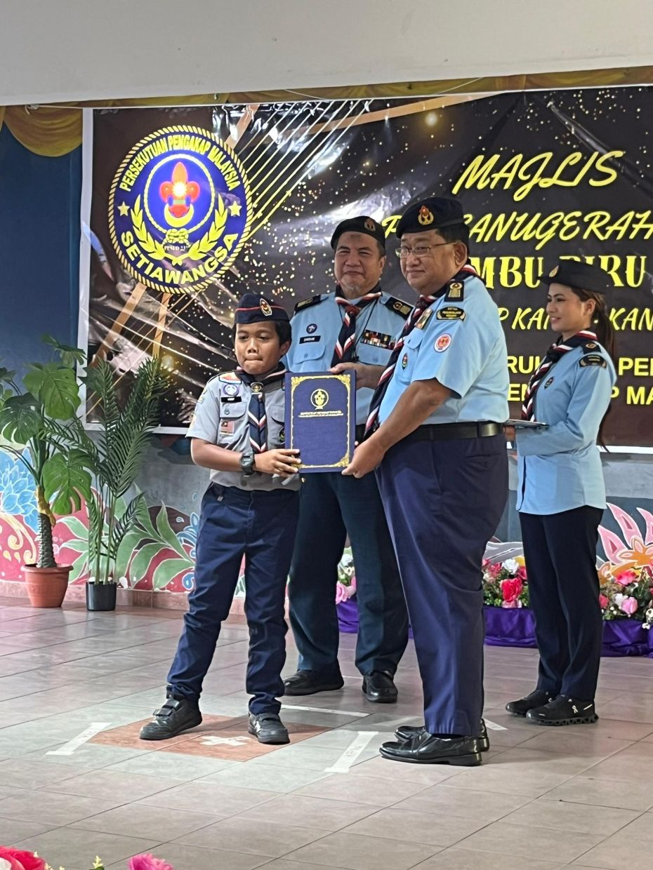 Hanif (kiri) juga pernah menerima Anugerah Rambu Biru, anugerah tertinggi bagi pengakap kanak-kanak. — Irina Mat Shafie