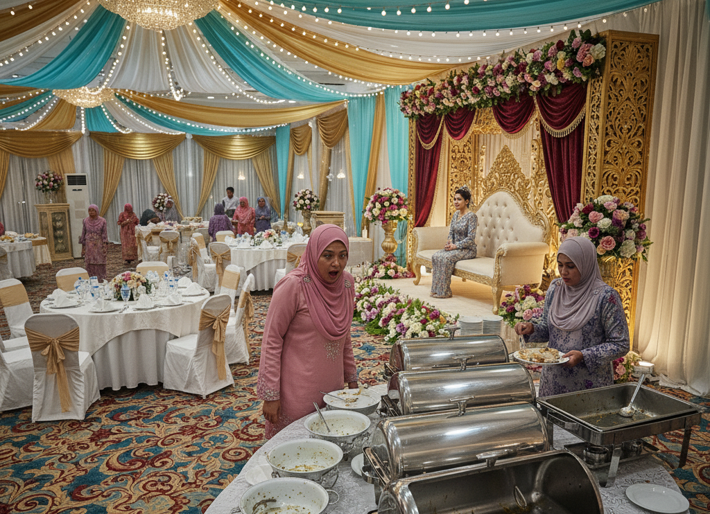 JUMLAH makanan tidak mencukupi untuk tetamu pada majlis perkahwinan sering kali mencetuskan konflik sesama ahli keluarga.