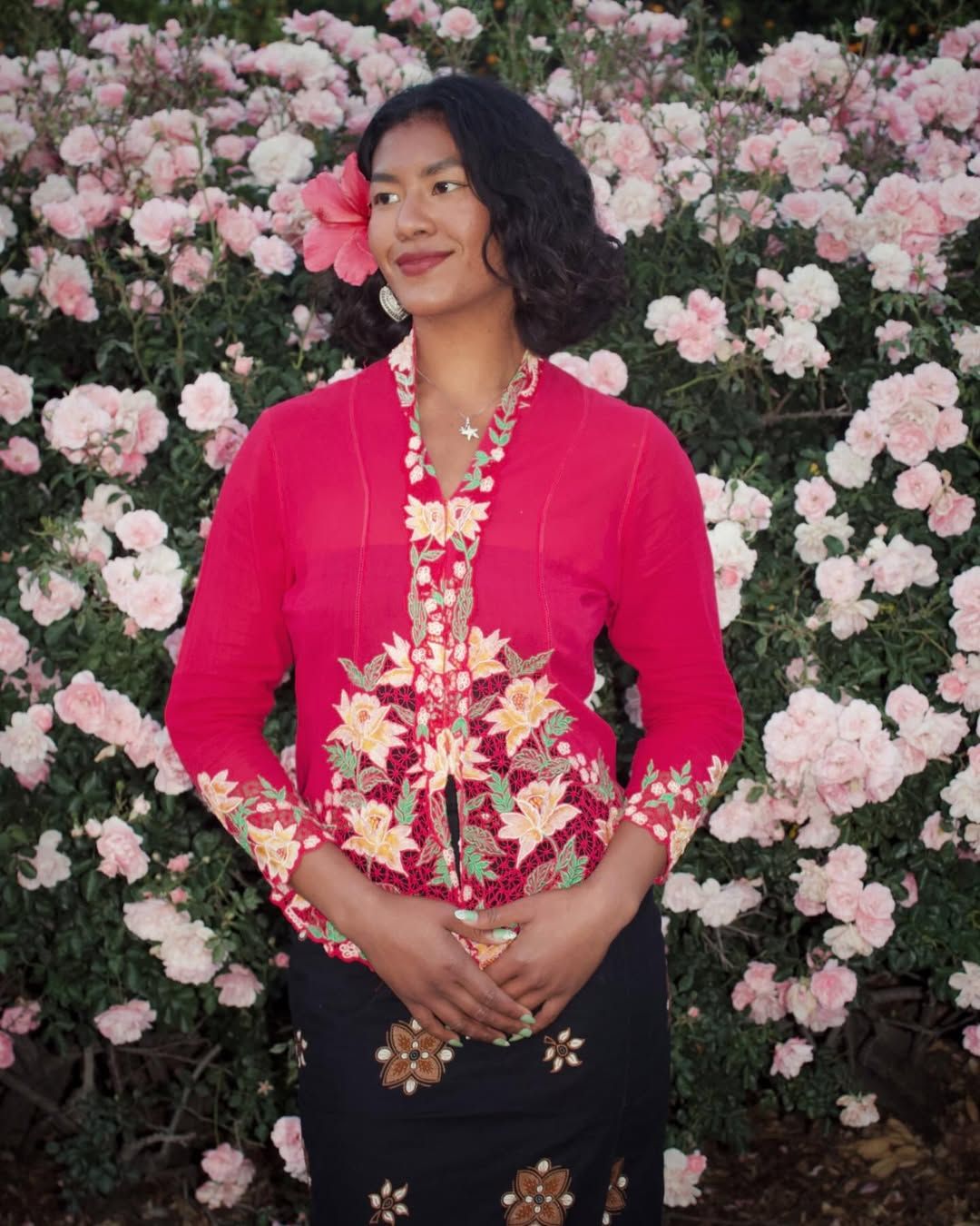 Tasha mengenakan kebaya nyonya warisan neneknya yang berketurunan Cina ketika di AS. — Tasha Mae