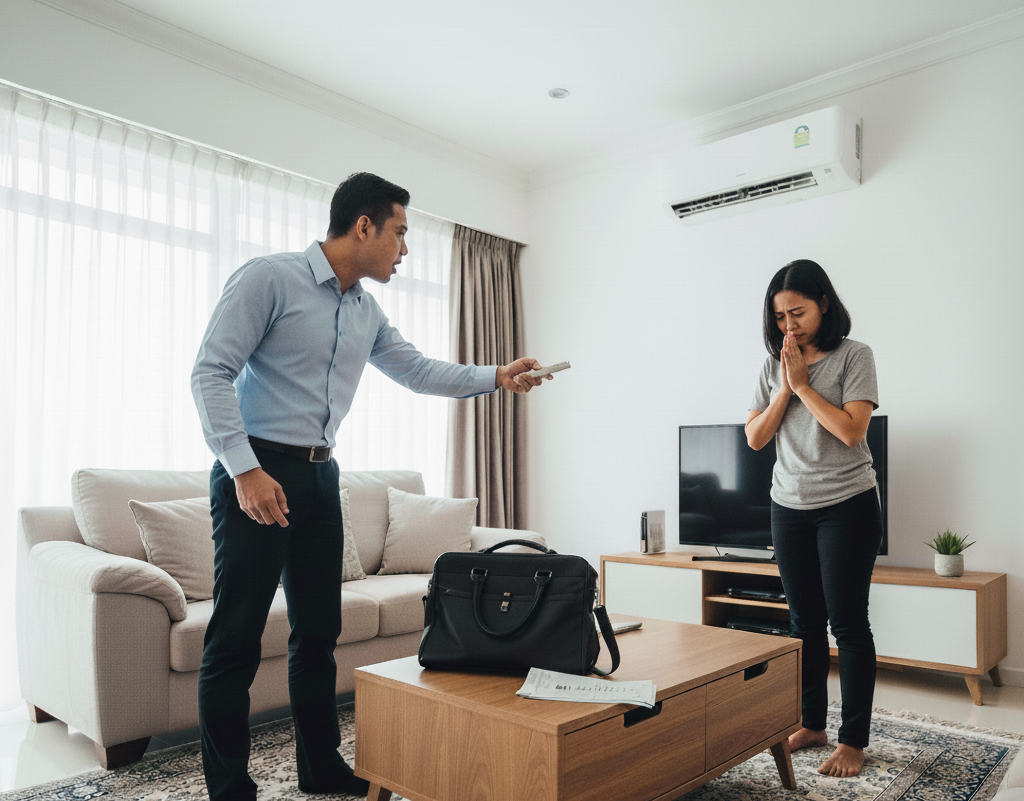 Pertelingkahan berlaku selepas si isteri terlupa menutup suis pendingin hawa. — Gambar hiasan