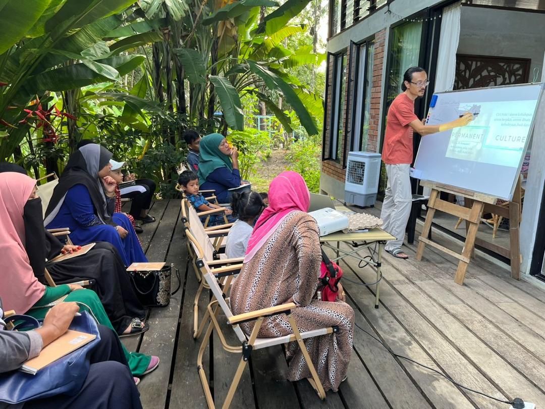 Khalid ketika mengendalikan bengkel berkaitan permakultur kepada masyarakat setempat.