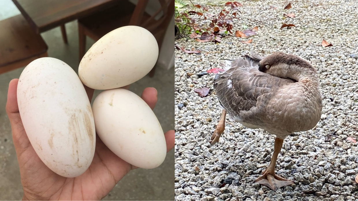 Mengutip telur angsa antara aktiviti yang boleh dijalankan tetamu di Kebun Lisdtari Farmstay.