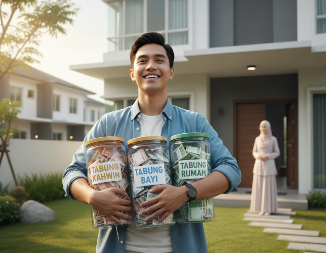 Golongan lelaki perlu bersedia dengan tiga simpanan tabung sebelum mendirikan rumah tangga. — Gambar hiasan/Janaan AI