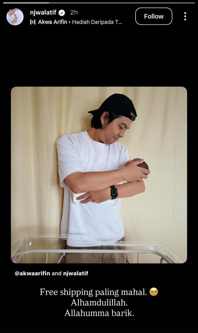 "Alhamdulillah, Najwa dan saya amat bersyukur serta gembira untuk berkongsi kami telah dikurniakan cahaya mata pada 11.11.2025, tarikh yang lebih istimewa kerana ia juga menandakan ulang tahun perkahwinan kami yang ketiga.